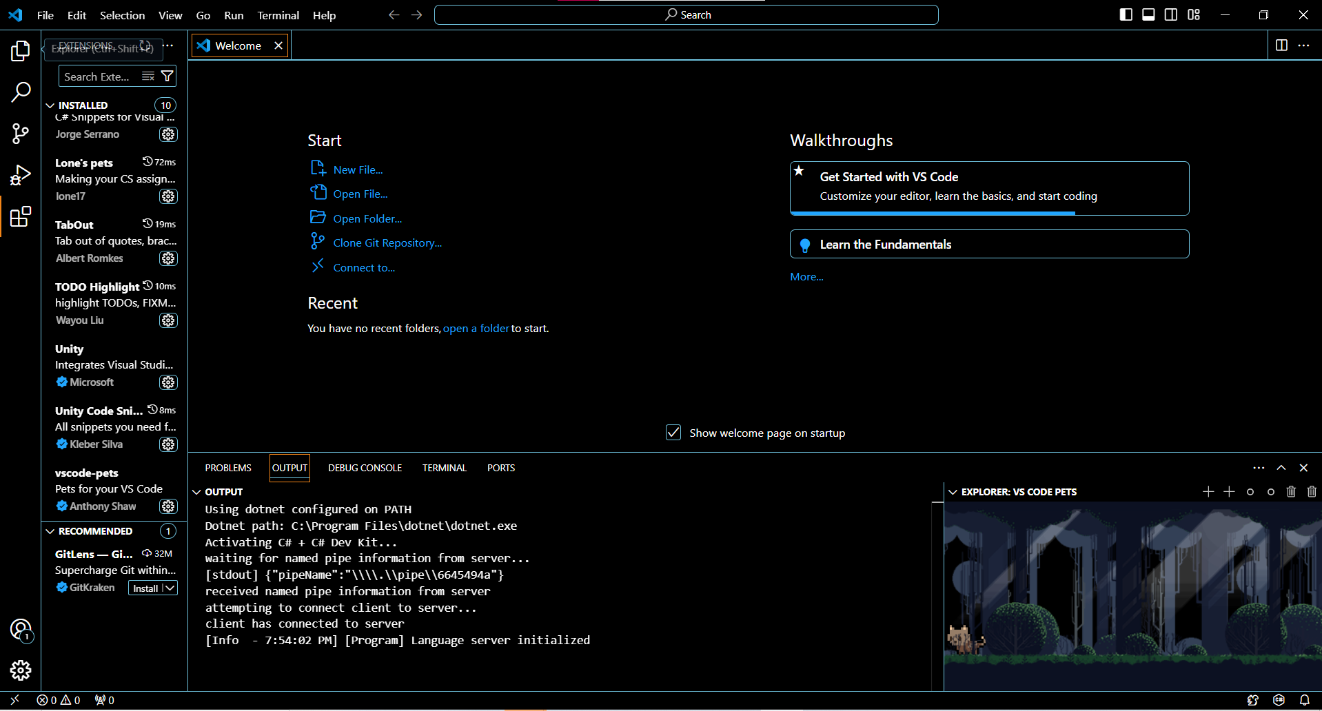 편집기 아래에 있는 나만의 동물들 재미도 없고 지겹고 칙칙한 비주얼스튜디오에서 코드를 짜던 나와 달리 팀원분은 한 켠에 작고 귀여운 생물들과 함께 작업을 하고 계셨다.