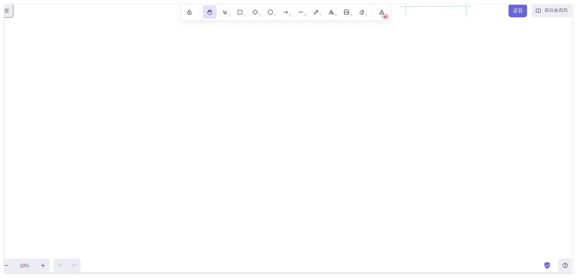 1. 옮기기 2. 사각형 생성 3. 마름모 생성 4.원형 생성 5.화살표 생성 6. 직선 생성 7.직접 그리기 8. 텍스트 입력 9. 이미지 삽입 10. 지우기